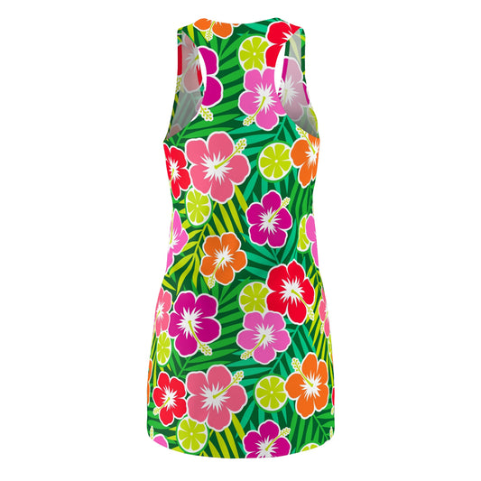 Athletic Dress - Colorful Hibiscus Flowers, Limes, Palm Leaves Pattern, Women's Summer Racerback Dress, Tropical Floral Sleeveless Dress,